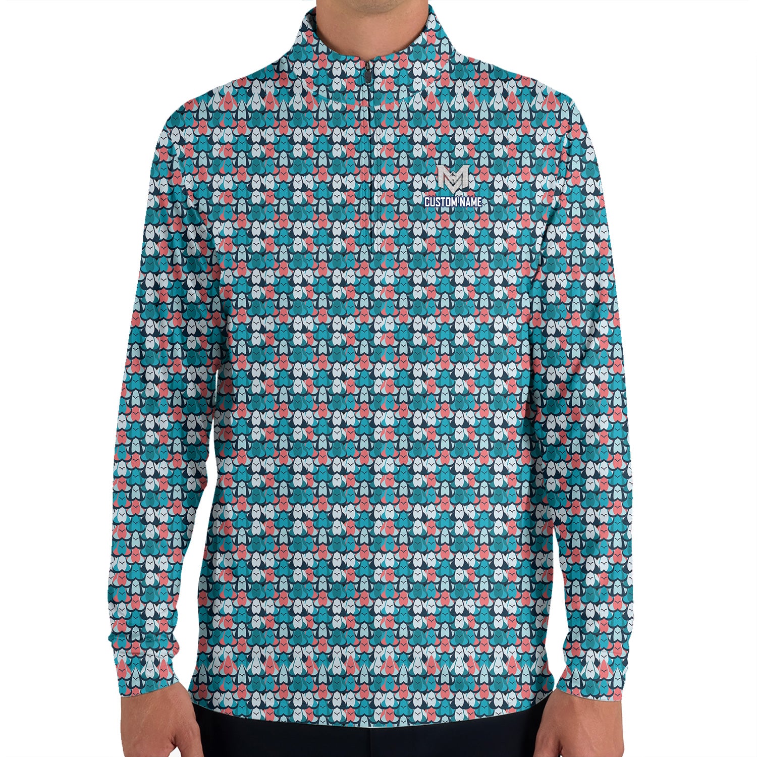 Colorful Golf Ball Pattern Quarter Zip Golf Pullover for Men All Over Print Lightweight Performance Long Sleeve Golf Jacket