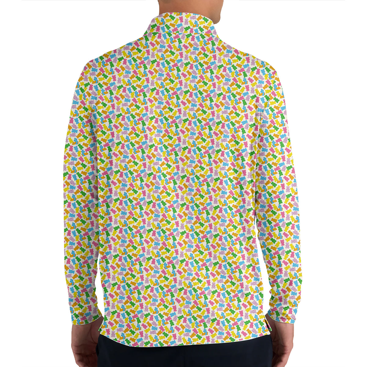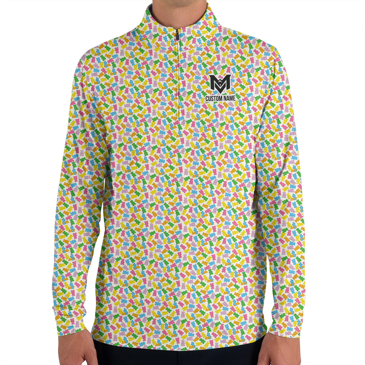 Colorful Gummy Bear Quarter Zip Golf Pullover for Men Funny Candy Pattern Lightweight Long Sleeve Performance Golf Jacket