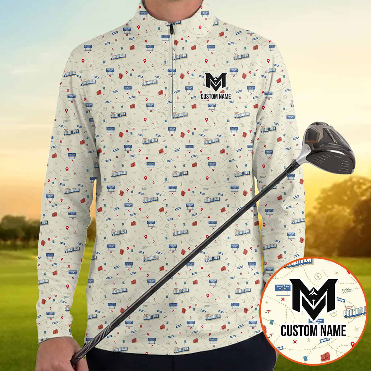 Funny Golf Course Map Quarter Zip Golf Pullover for Men Golf Strategy Pattern Lightweight Long Sleeve Performance Golf Jacket
