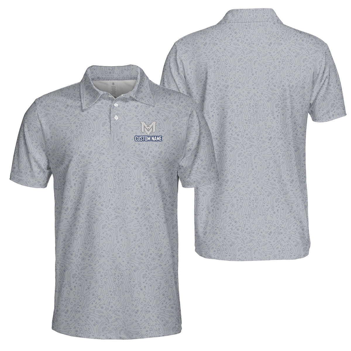 Funny Golf Doodle Pattern Polo Shirt for Men Minimalist All Over Print Performance Golf Polo Lightweight Breathable Golf Shirt
