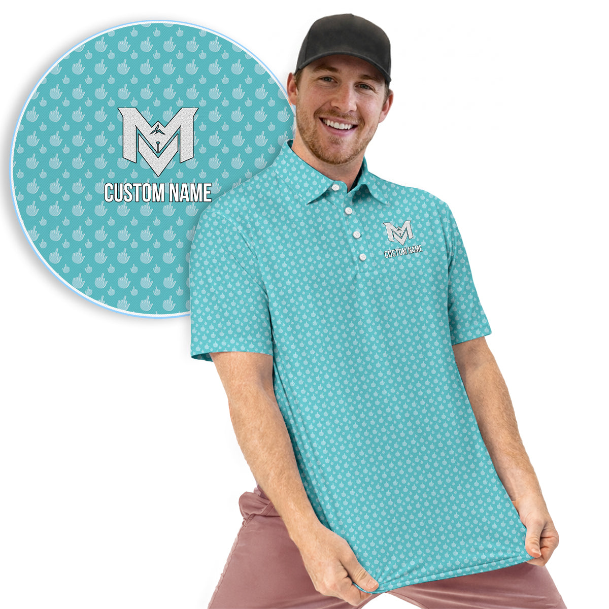 Light Blue Funny Golf Hand Gesture Polo Shirt for Men All Over Print Performance Golf Polo Lightweight Breathable Golf Apparel