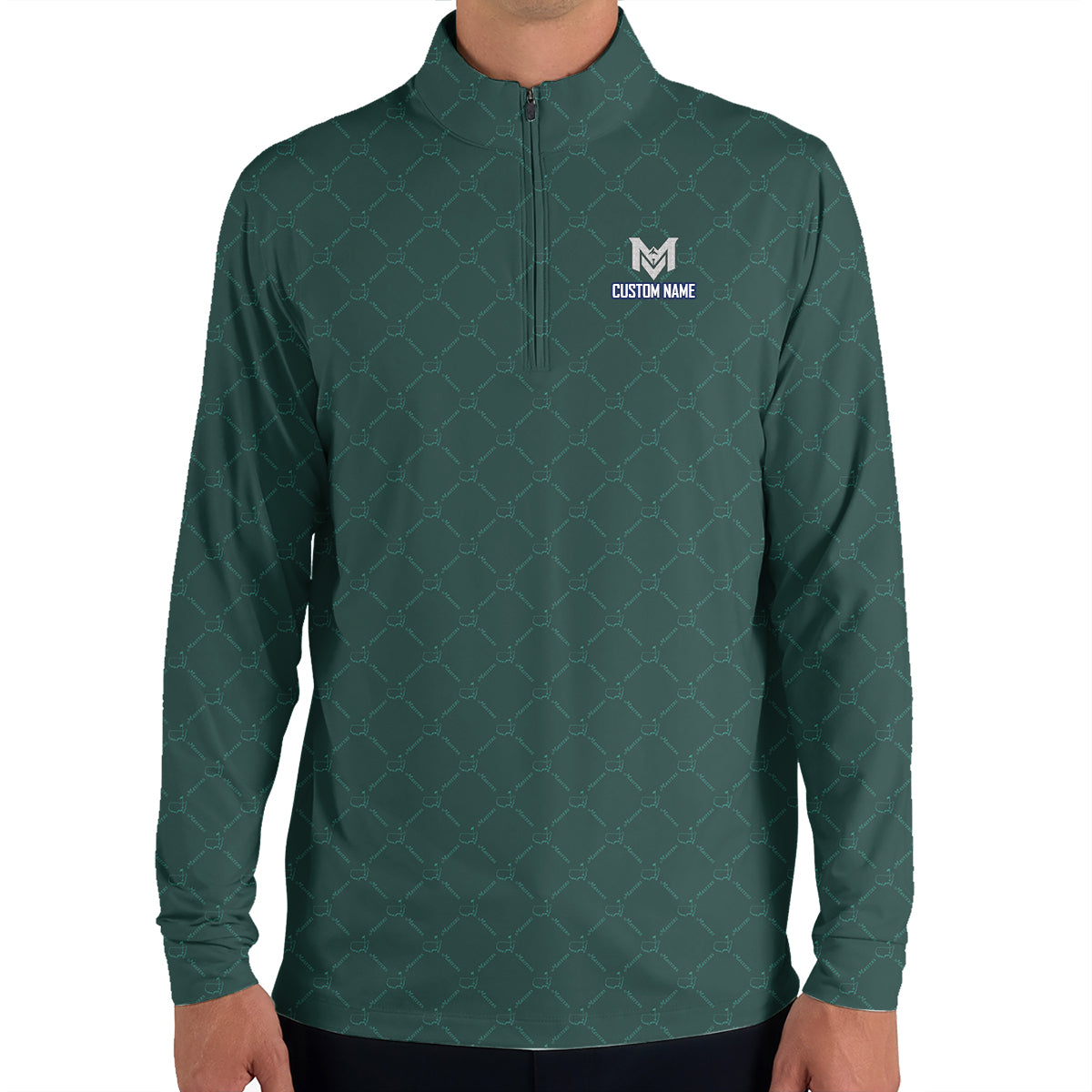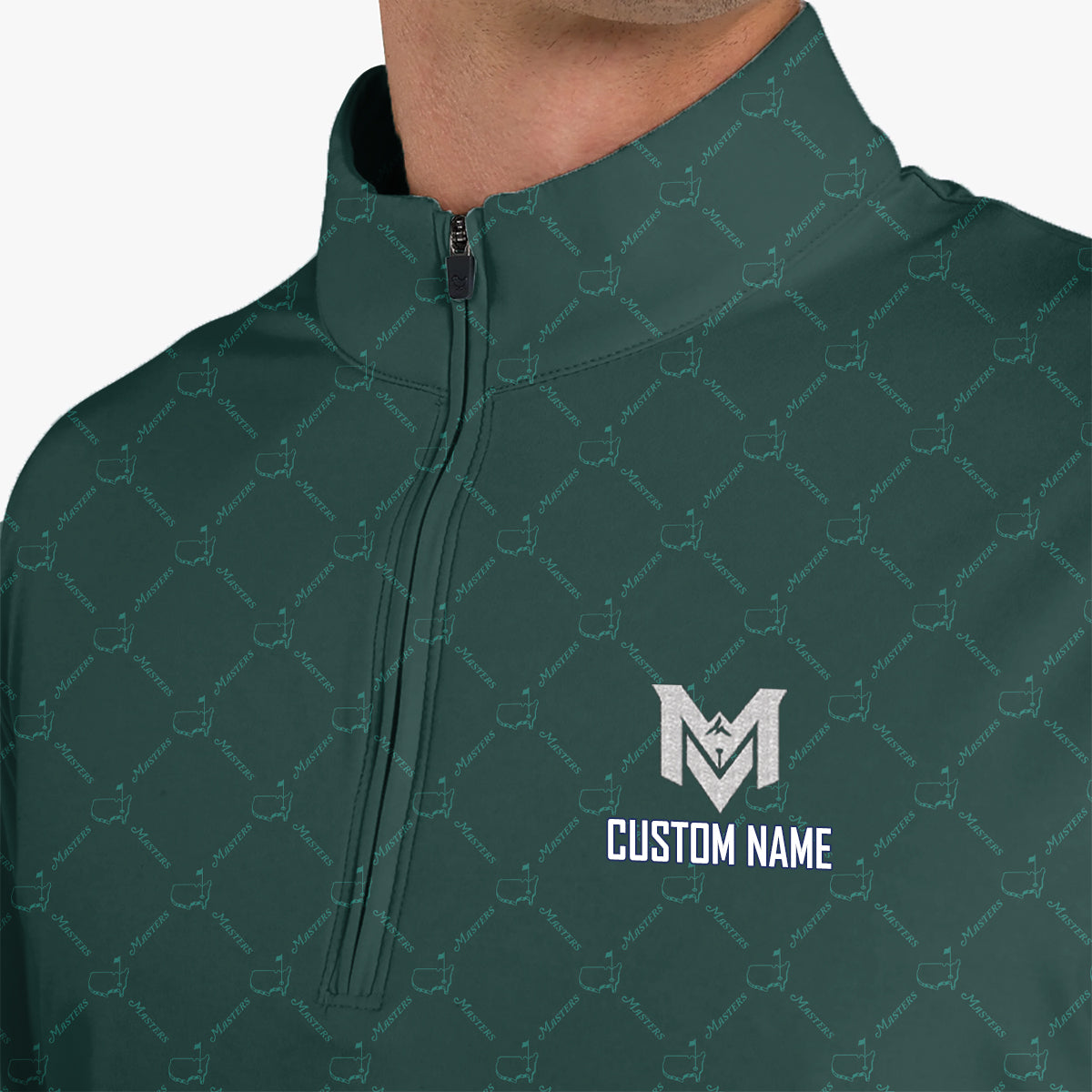 Masters Green Quarter Zip Golf Pullover for Men Classic Tournament Pattern Lightweight Long Sleeve Performance Golf Jacket