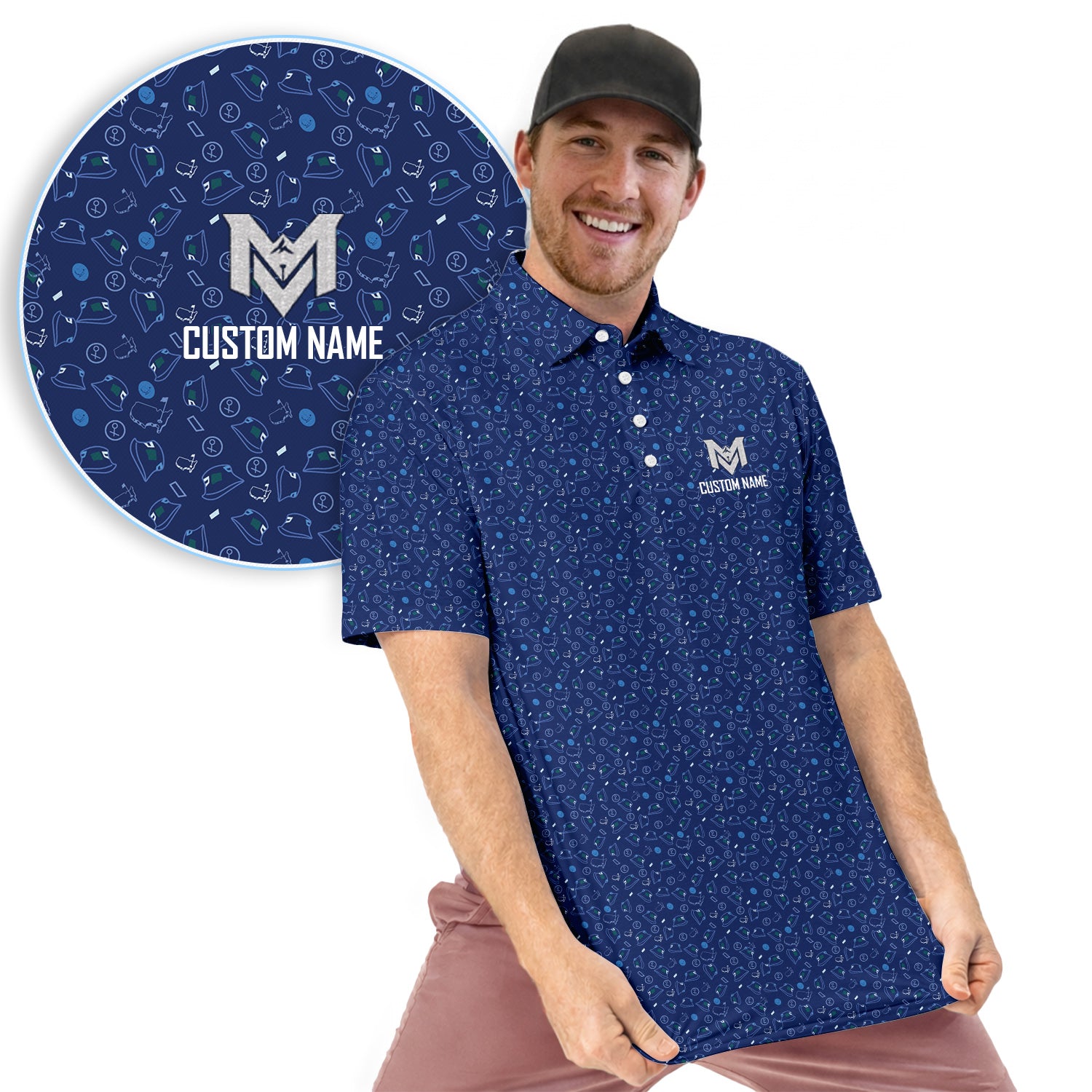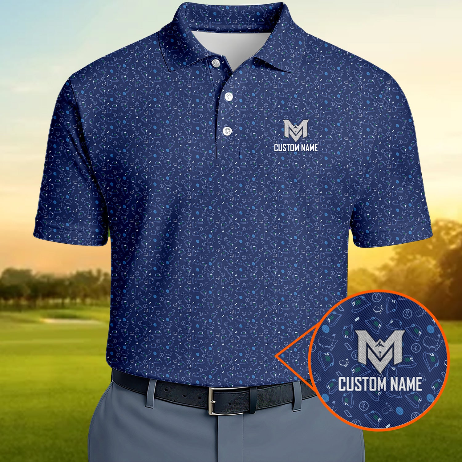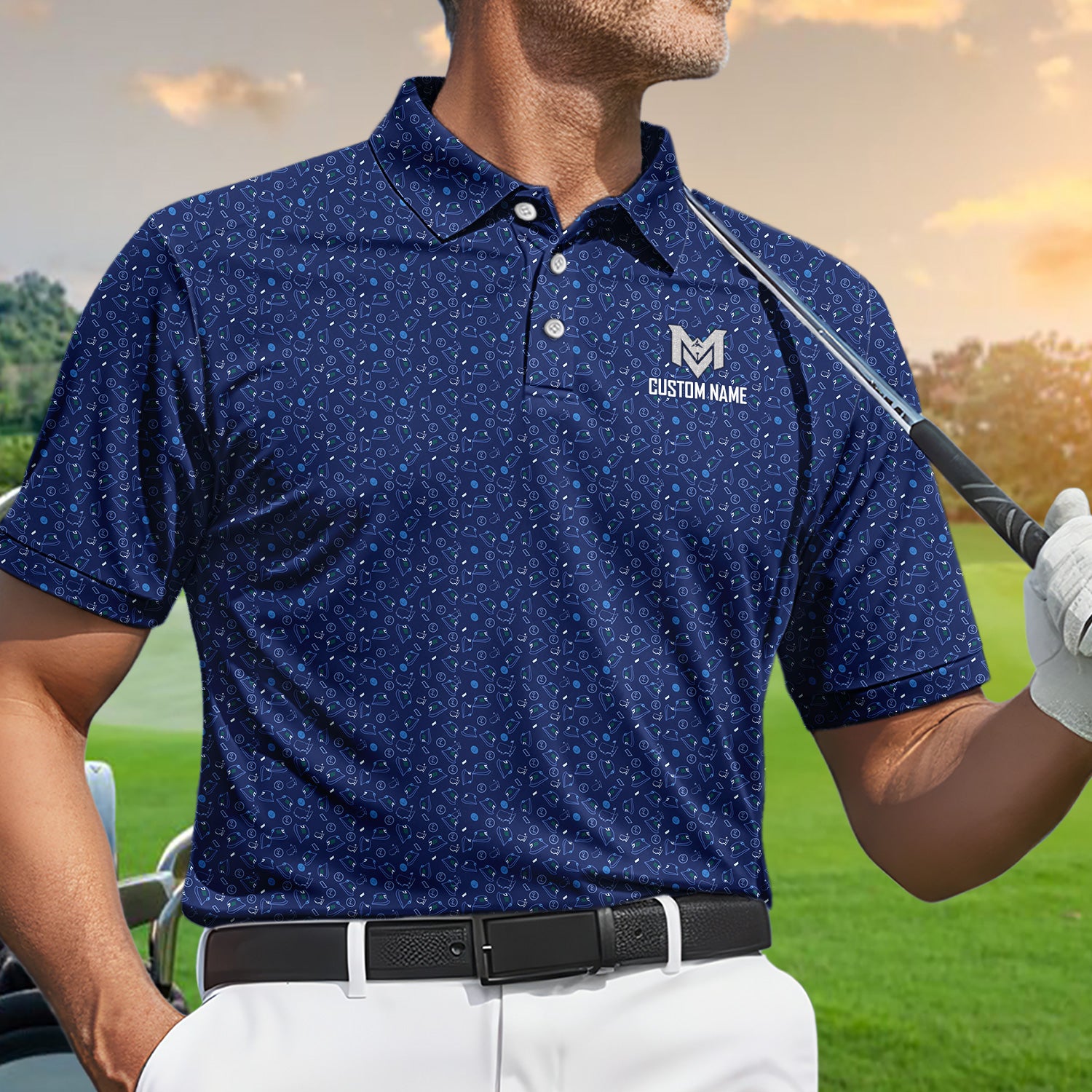 Personalized Name Golf Polo Shirt – Custom Pattern Polo for Men – Stylish Casual Golf Shirt