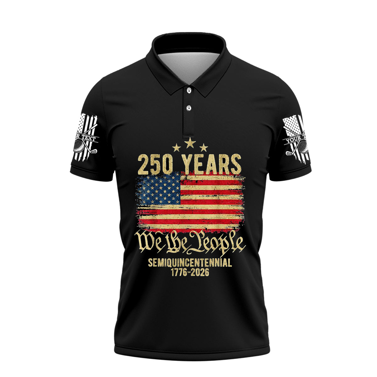 USA 250 Years We The People 1776–2026 Patriotic Golf Polo Shirt for Men American Flag Semiquincentennial Golf Shirt 4th of July Golfer Gift